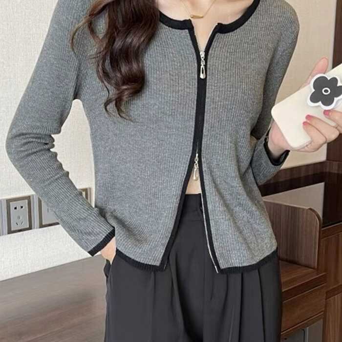 ダブルジップ 長袖ニットカーディガンニットトップス 前開きニット 上品 ニットソー 通勤服レディースファッション トップス ニット セーター セーター