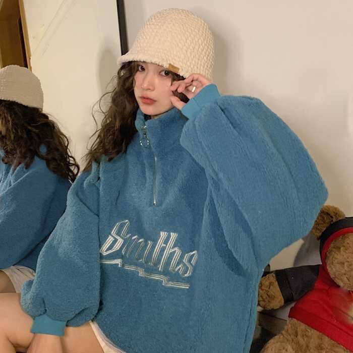 ボアトレーナー フロントジップ 韓国風モコモコスウェット ゆったりスウェット 秋冬新作トップスレディースファッション トップス スウェット トレーナー