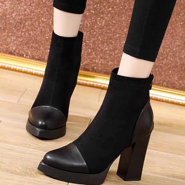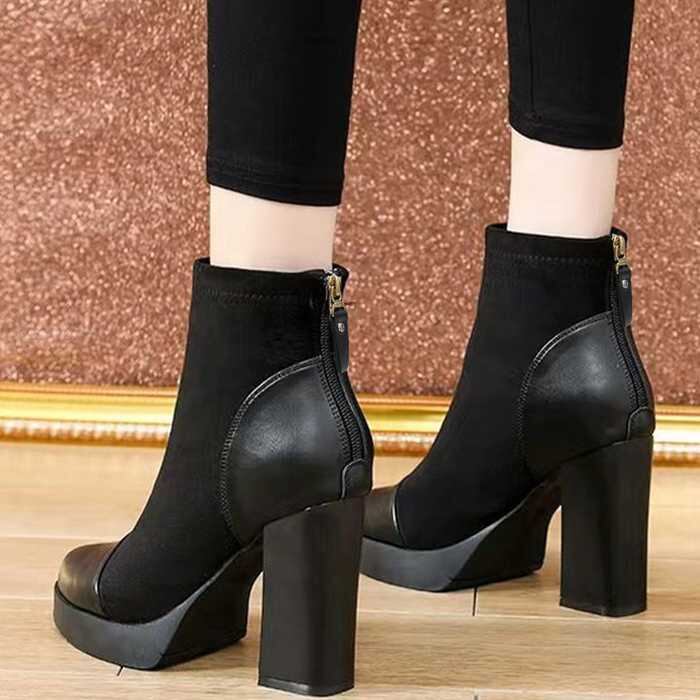 ショートブーツ 太ヒールブーティ 美脚靴ミドルブーツ 秋冬 ハイヒールブーツ チャンキーヒール靴靴 レディース靴 ブーティ