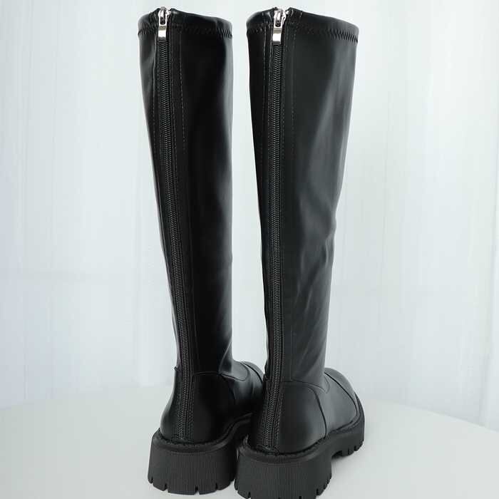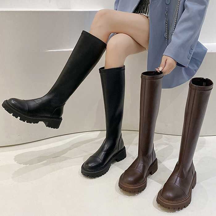 ロングブーツ 厚底ブーツ ニーハイブーツボリュームソール靴 ローヒールシューズ ジッパー付きブーツ靴 レディース靴 レインシューズ 長靴 ブーツ 長靴