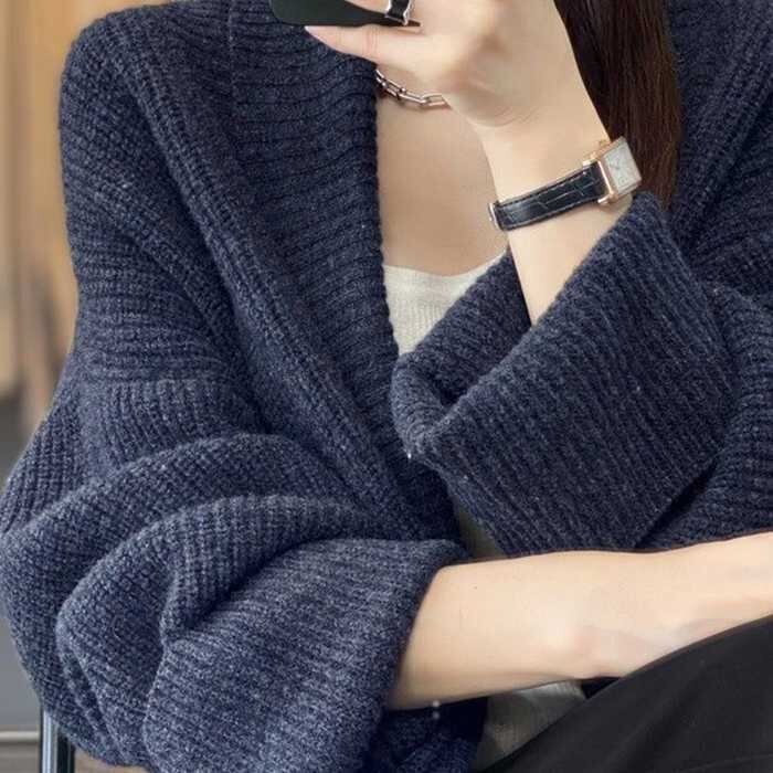 商品について厚みのある柔らかニット生地で仕上げた、抜け感&こなれ感が溢れる韓国新作DESIGNののレディースカーディガン