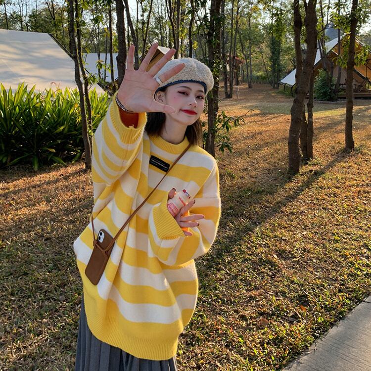 4カラー ボーダーニットトップス ローレディースファッション 豊富な品揃えvertical-key: ブラック ブルー イエロー ピンク