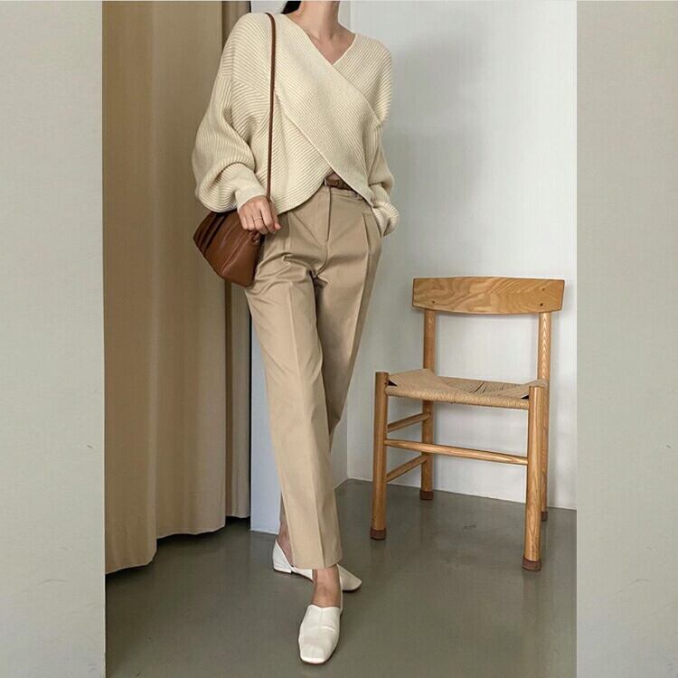 4カラー フロントクロスリブニット トレディースファッション 豊富vertical-key: アイボリー カフェオレ ダークグレー ブラック