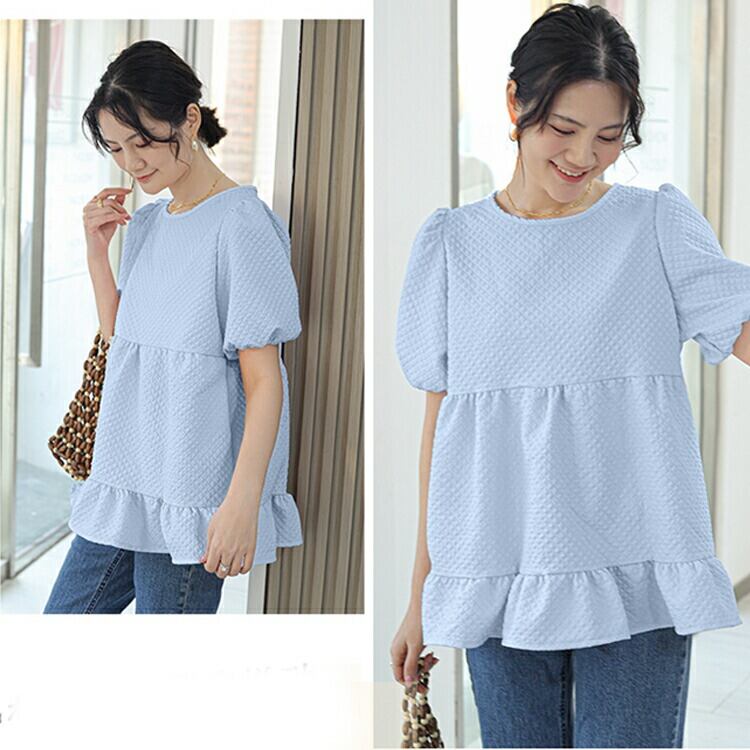 4カラー パフスリーブ ペプラム トッレディースファッション 続々登場horizontal-key: M L vertical-key: ブラック ホワイト ピンク ブルー