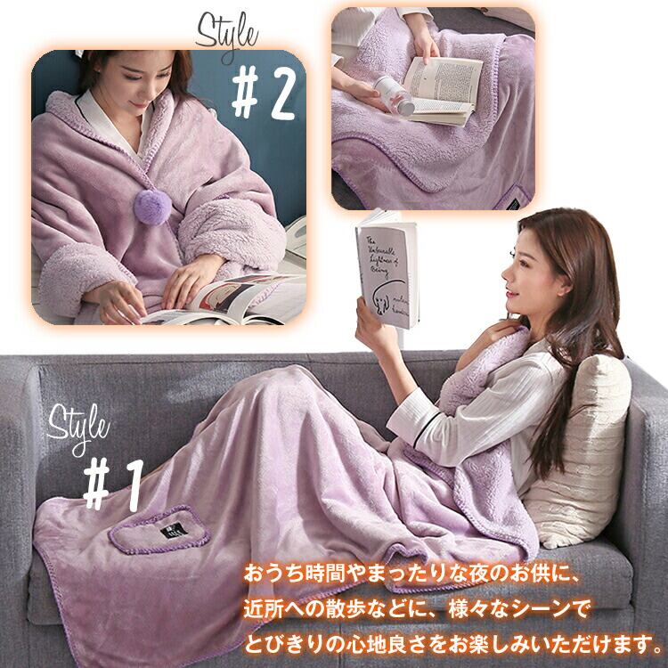 肩掛けとしても着用可能なオールインワン・スタイルのブランケット