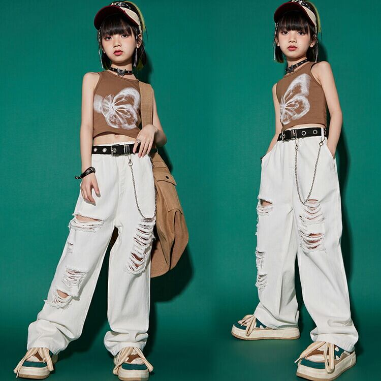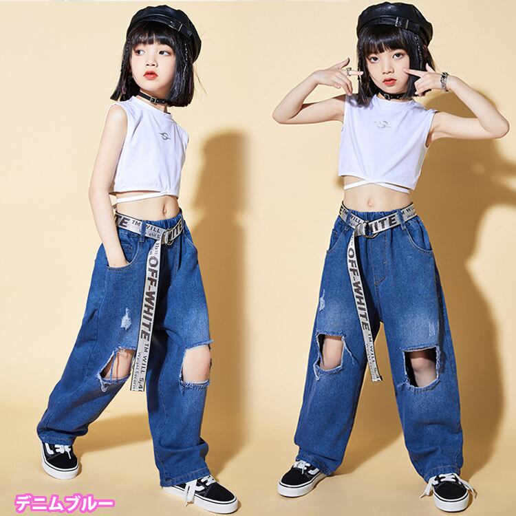 2カラー 8サイズ キッズ ダメージジーンズ キッズパンツ ロングパンツ デニムパンツ ダメージ加工 キッズ ボトムス 長ズボン ウエストゴム ポケット付き キッズダンス ヒップホップ