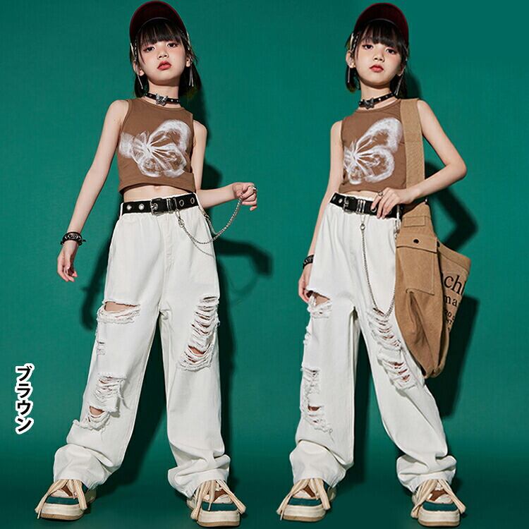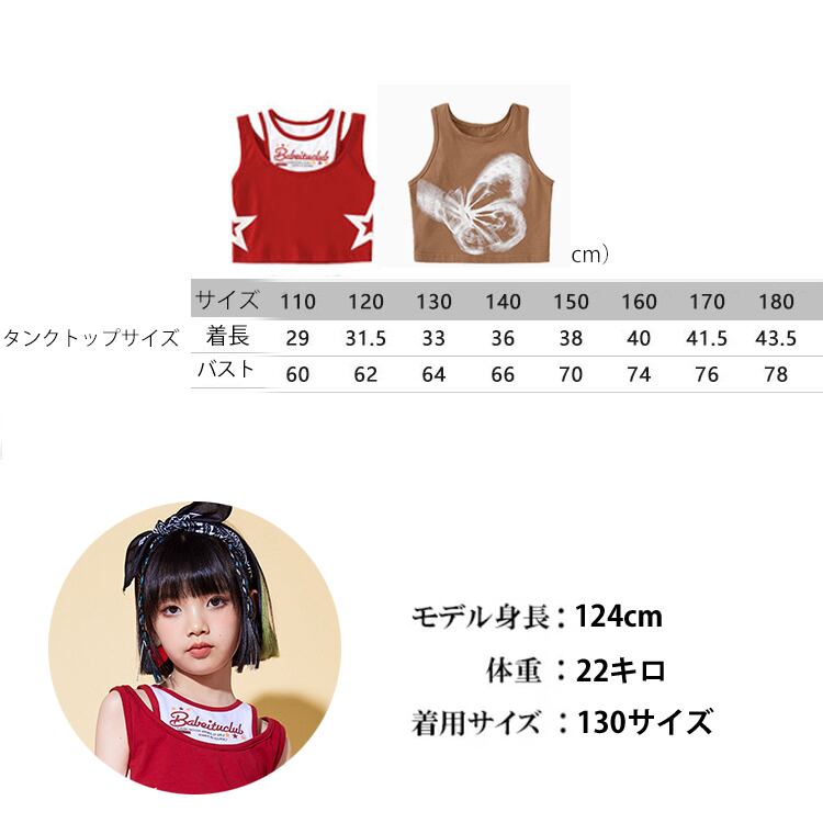 2カラー 8サイズ キッズ ショートタンクトップ キッズトップス 重ね着風 肌魅せ へそ出し 蝶 バタフライ 星 ロゴ 2タイプ レッスン着 練習着 カジュアル