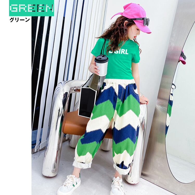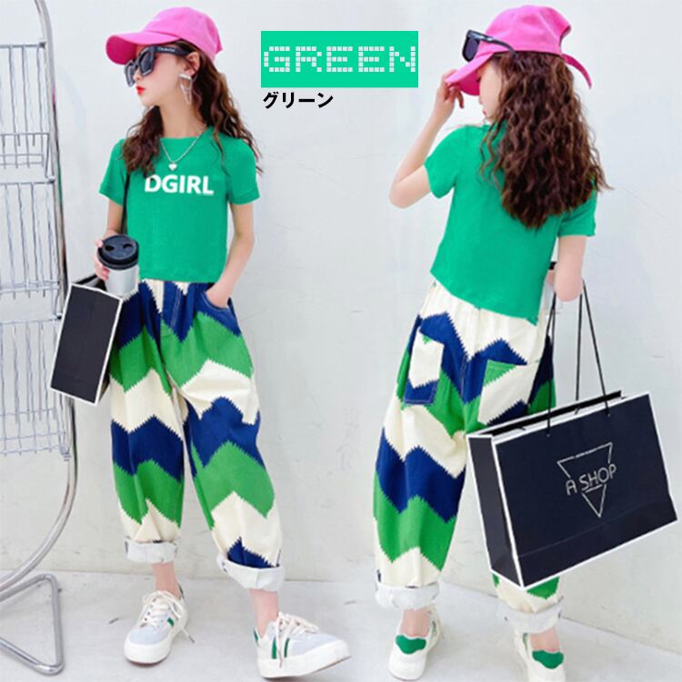キッズセットアップ ジオメトリック 柄キッズ ベビー マタニティ お買い得horizontal-key: グリーン オレンジ vertical-key: 120 130 140 150 160 170