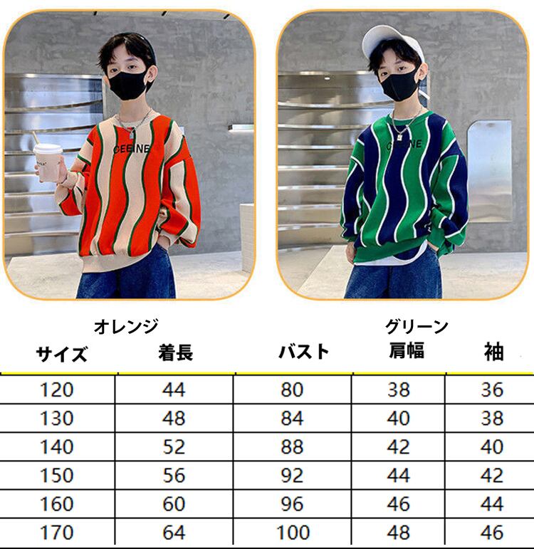 2カラー 6サイズ キッズトップス 裏キッズ ベビー マタニティ 豊富horizontal-key: グリーン オレンジ vertical-key: 120 130 140 150 160 170