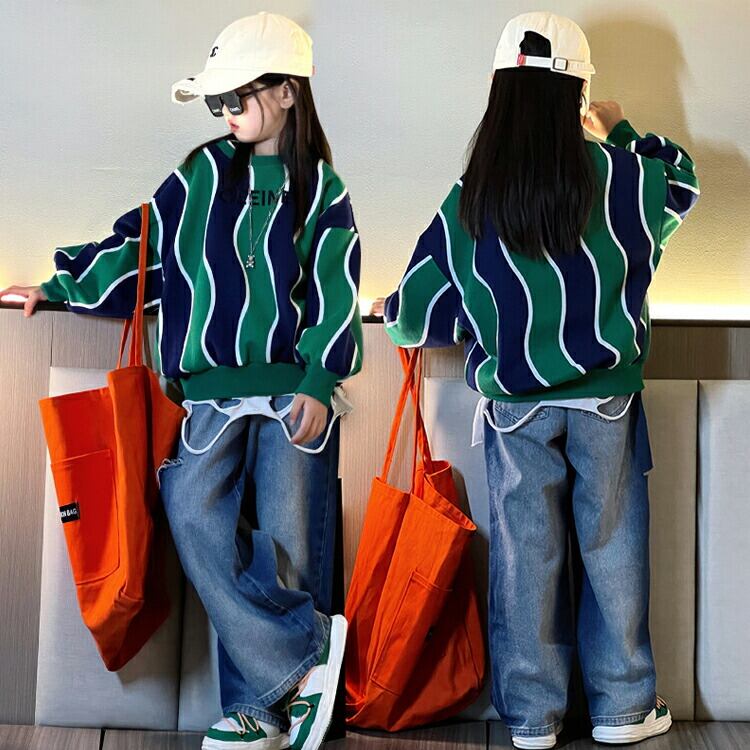 2カラー 6サイズ キッズトップス 裏起毛 キッズトレーナー 秋冬 長袖 トレーナー 英文字 袖口リブ 高見え ラウンドネック 派手色 普段着 練習着 レッスン着 男の子 女の子 男女兼用