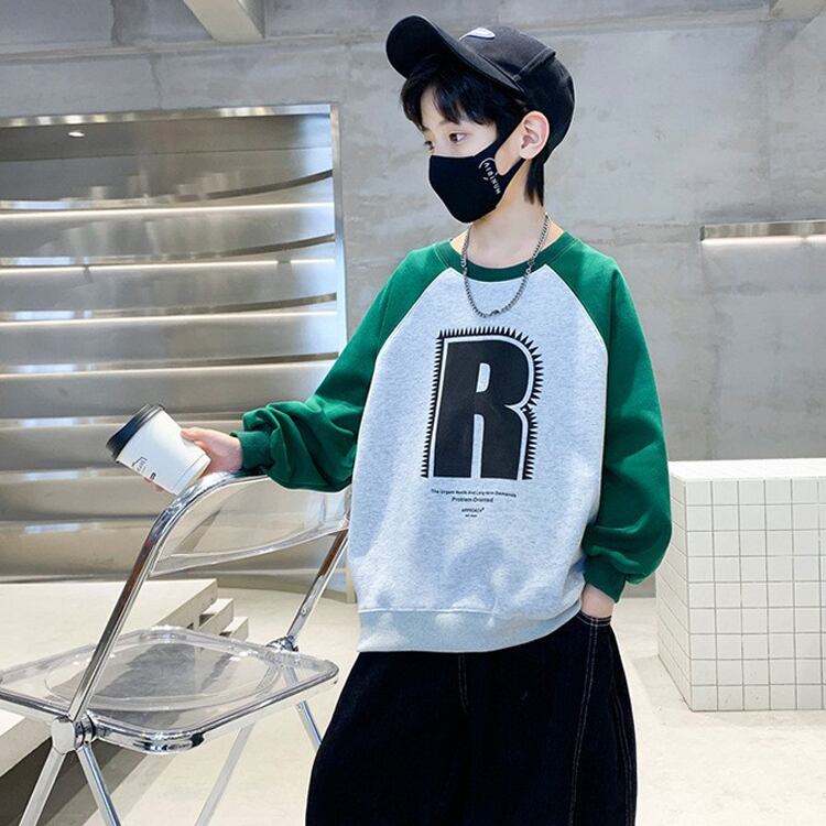 2カラー 6サイズ キッズトップス プリント 配色トレーナー 秋冬 キッズトレーナー 長袖 プリントロゴ 袖口リブ ラウンドネック 普段着 練習着 レッスン着 男の子 女の子 男女兼用 韓国風