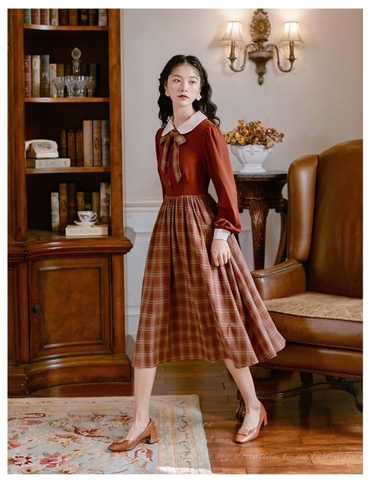 ワンピースセット 蝶タイ フェイクレイヤード S-XL 赤 学生服 女子高生 卒業式 オシャレ フランス風