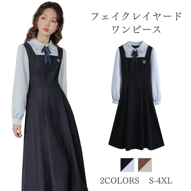 フェイクレイヤード ワンピース ロングワンピース 42%OffKey0: ネイビー コーヒー色 サイズ: S M L XL 2XL 3XL 4XL