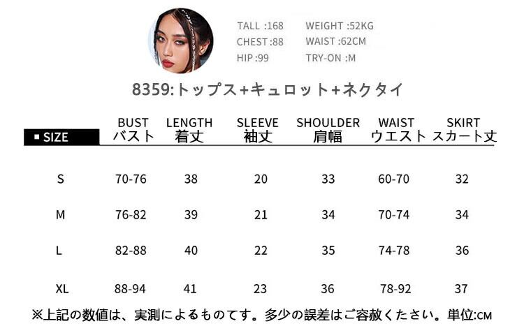 8359-3点セット:トップス+キュロット+ネクタイ商品仕様 素材:ポリエステル、その他商品サイズ