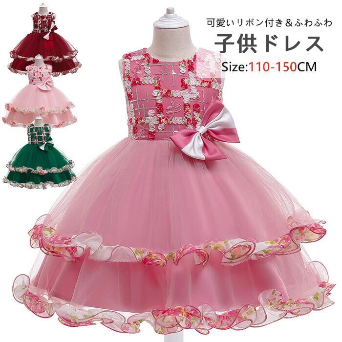 ドレス 子供用 110-150CM膝丈 フォーマルドレス パーティードレス リボンドレス 結婚式 発表会 演奏会 フラワーガール