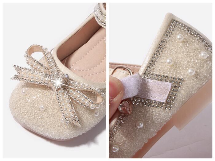 ビジューリボン&パープル付き、キラキラして高級感あふれる とてもオシャレで服に合わせやすく大活躍♪フォーマル靴子供靴 キッズ フォーマルシューズピンクベージュ