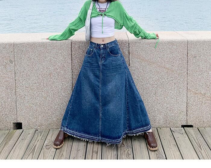 マーメイドラインで華やかで女性らしいシルエットに どんな服に合わせやすい ロングデニムスカート デニムスカート レディース スカート 体型カバー マキシ丈スカート S-XL