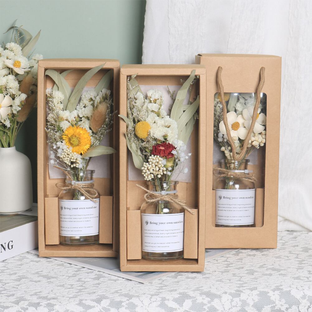 1.【ドライフラワーブーケ】ガラスボトルとドライブーケがになっている ボトルシリーズ。 お部屋のインテリアにそっと飾れるアイテムです。 家族の憩いの場に彩りを添えます。ウィンドウボックスに入っていますので、プレゼントにも最適です。 2.ガラスの花瓶の美しさを引き出してくれます。ベーシック形状でシーンやインテリアを選ばないガラスベース。切花を飾るのに使い勝手の良いサイズ感のため、季節問わずお使いいただけます 3.お花に埃がかからず、お手入れが簡単で、より長く美しさを保ちます。 飾っておくと本当に生花のような雰囲気を出してくれます。観賞花期が長いです。 4.多目的:クリスマスプレゼント、母の日、結婚式、植栽、新築祝い、特別なフラワーアレンジメントや部屋の装飾用に設計された新しい家に移動するための完全なギフト。 5.【素材】プリザーブドフラワー、ドライフラワー、ガラス