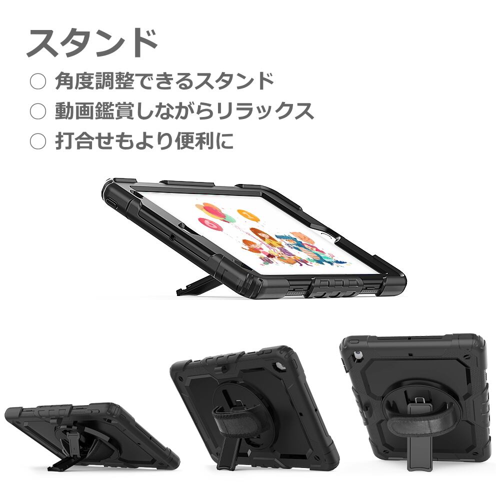 ipad ケース 耐衝撃 ハイブリット ペン収納 シリコン アームバンド ショルダー 回転 キックスタンド 第10世代 第9世代 8世代 10.2 air5 air4 10.9 ipad air 第