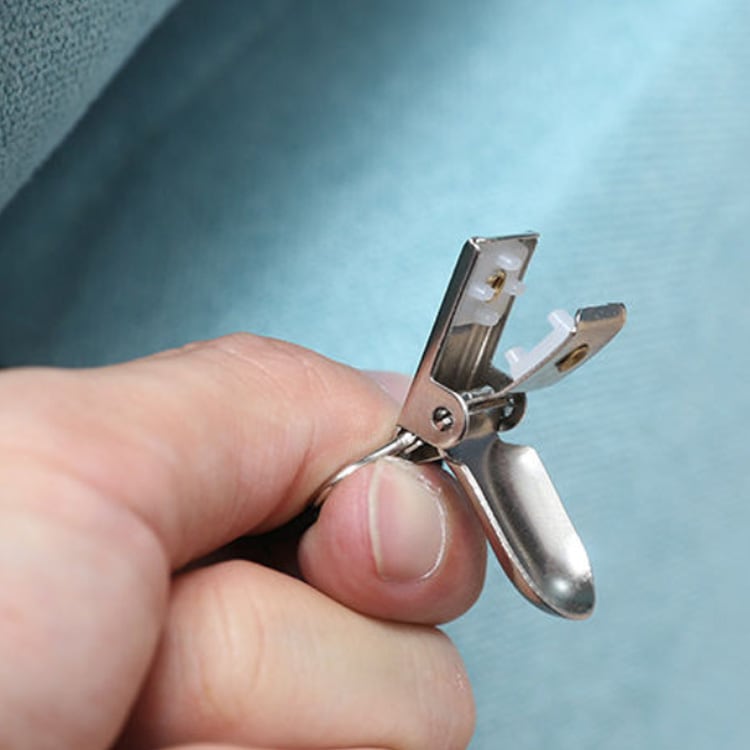 金具で長さ調節ができ、強力クリップでがっちり挟むので、外れにくく安心です。