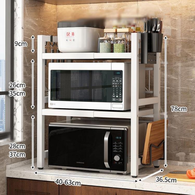 約40cmから63cmまで伸縮できます。レンジの大きさや収納物の量、置く場所の広さなどに合わせてちょうどいい形で設置できます。サイズFサイズについての説明F 幅40-63cm調整可能 奥行36.5cm 高さ78CM(下から数える一段目は28cmと37cm、二段目は26cmと35cm二つの高さがあります)素材スチール色ホワイト ブラック備考●サイズ詳細等の測り方はスタッフ間で統一、徹底はしておりますが、実寸は商品によって若干の誤差(1cm〜3cm )がある場合がございますので、予めご了承ください。