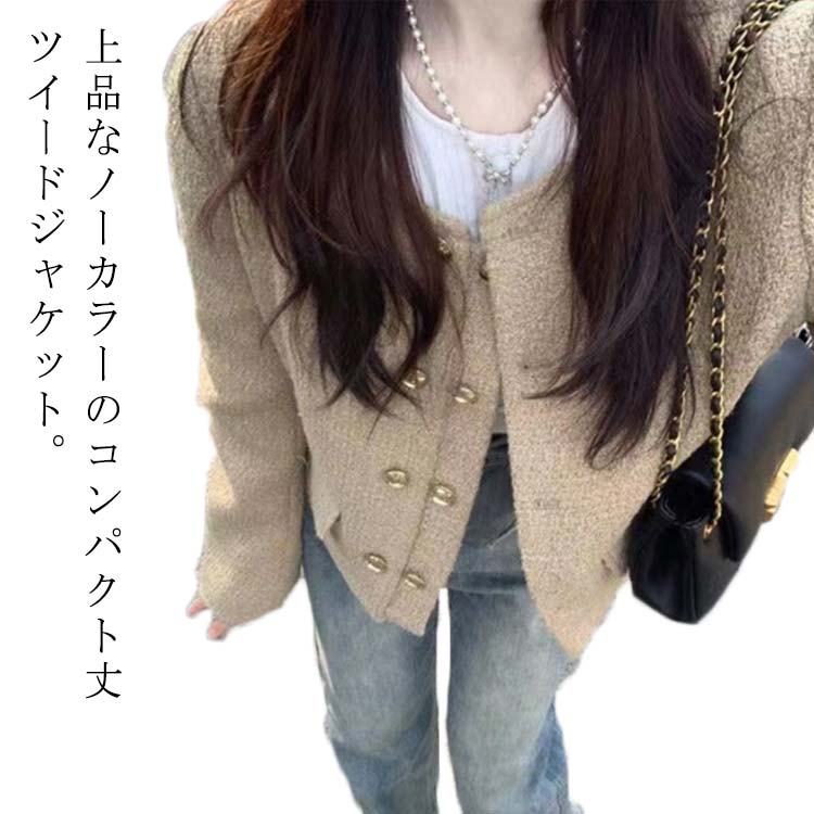 ツイード アウター レディース 秋冬春 ジャケット 長袖ジャケット 秋冬春 アウター スーツ ノーカラー