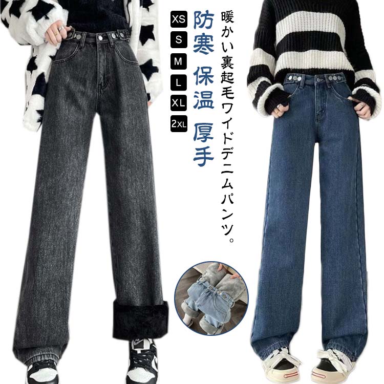 デニムパンツ ワイド パンツ 裏起毛 デニム レディース ストレートパンツレディースファッション ボトムス パンツ