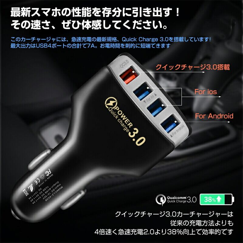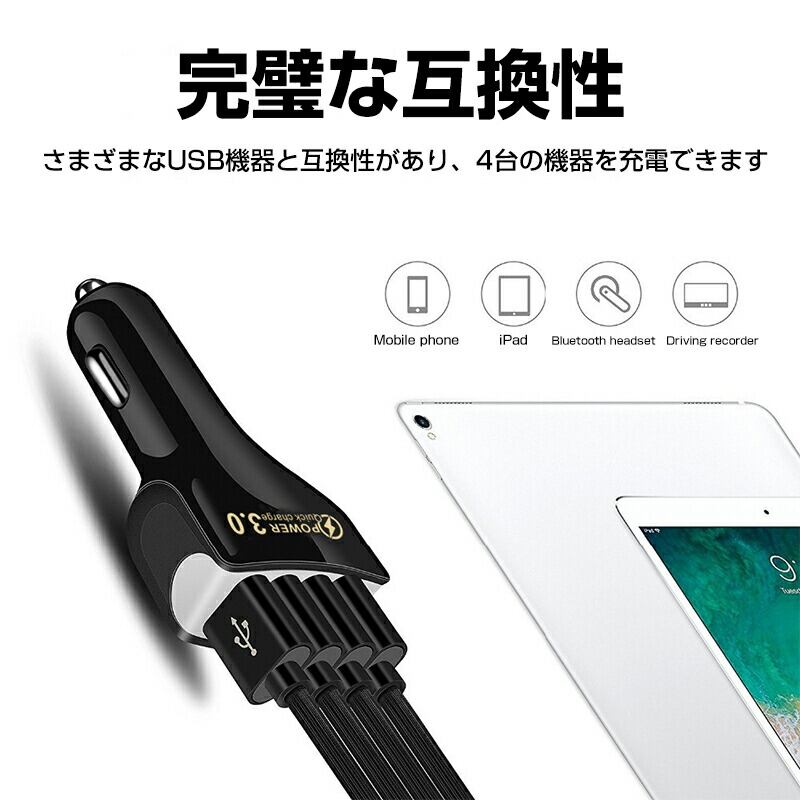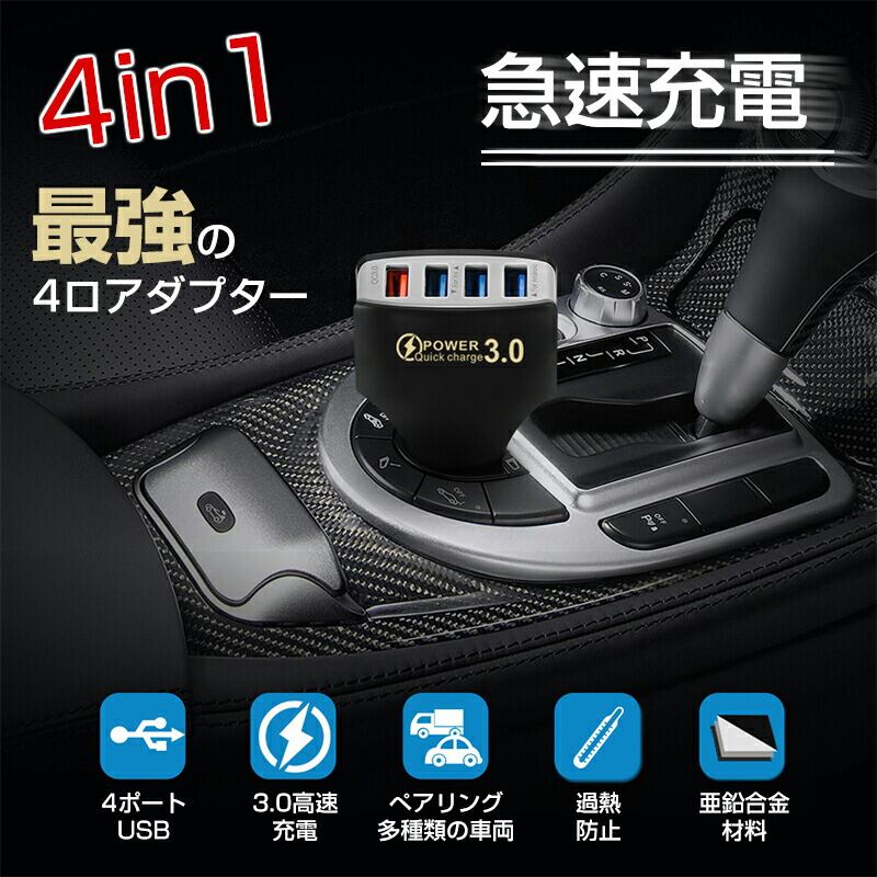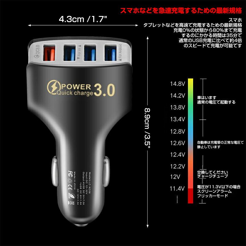 USBシガーソケット 12V-24V 車載用 4ポート クイックチャージ3.0スマートフォン タブレット バッテリー 充電器 AC式充電器