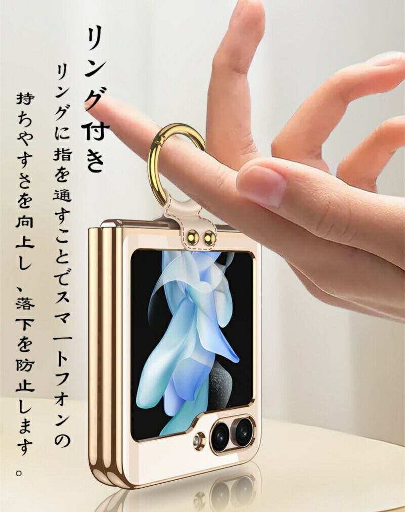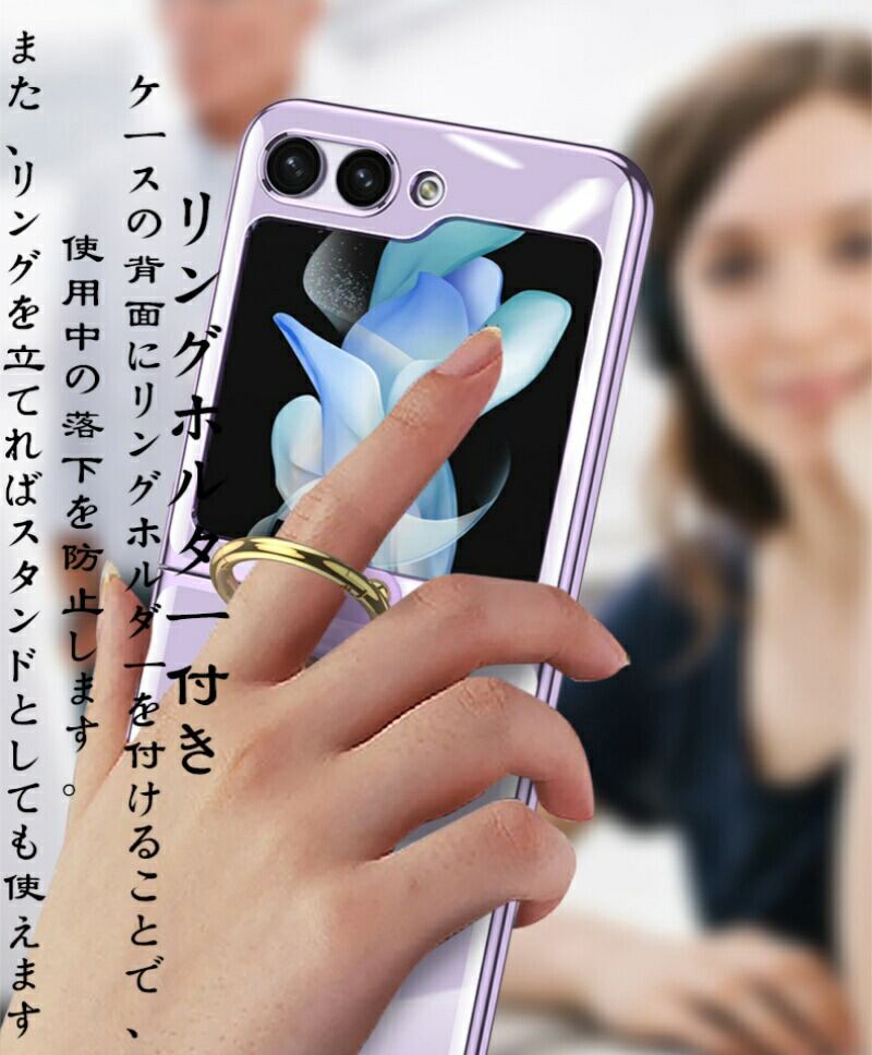 Galaxy Z Flip5 ケース Galaxy Z Flip5 カバー クリア フィルム リング付き メッキ加工 フリップ5 背面 カバー galaxy z flip5 ケース 透明 ガラスフィル