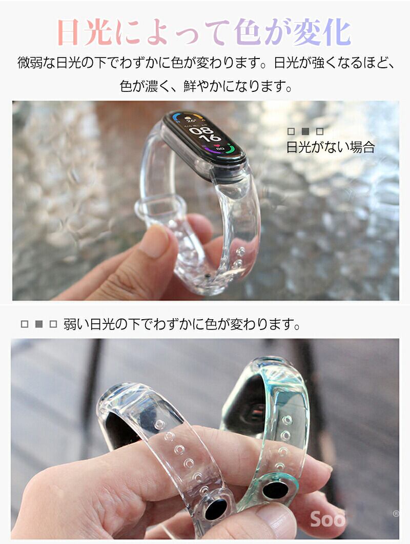 xiaomi smart band 8 交換バンド Xiaomi Mi band 8 替えベルト band 7 6 5 バンド 半透明 紫外線で色が変わる band 4 Band 3 替えベルト 色が