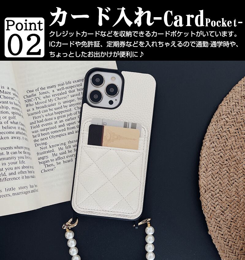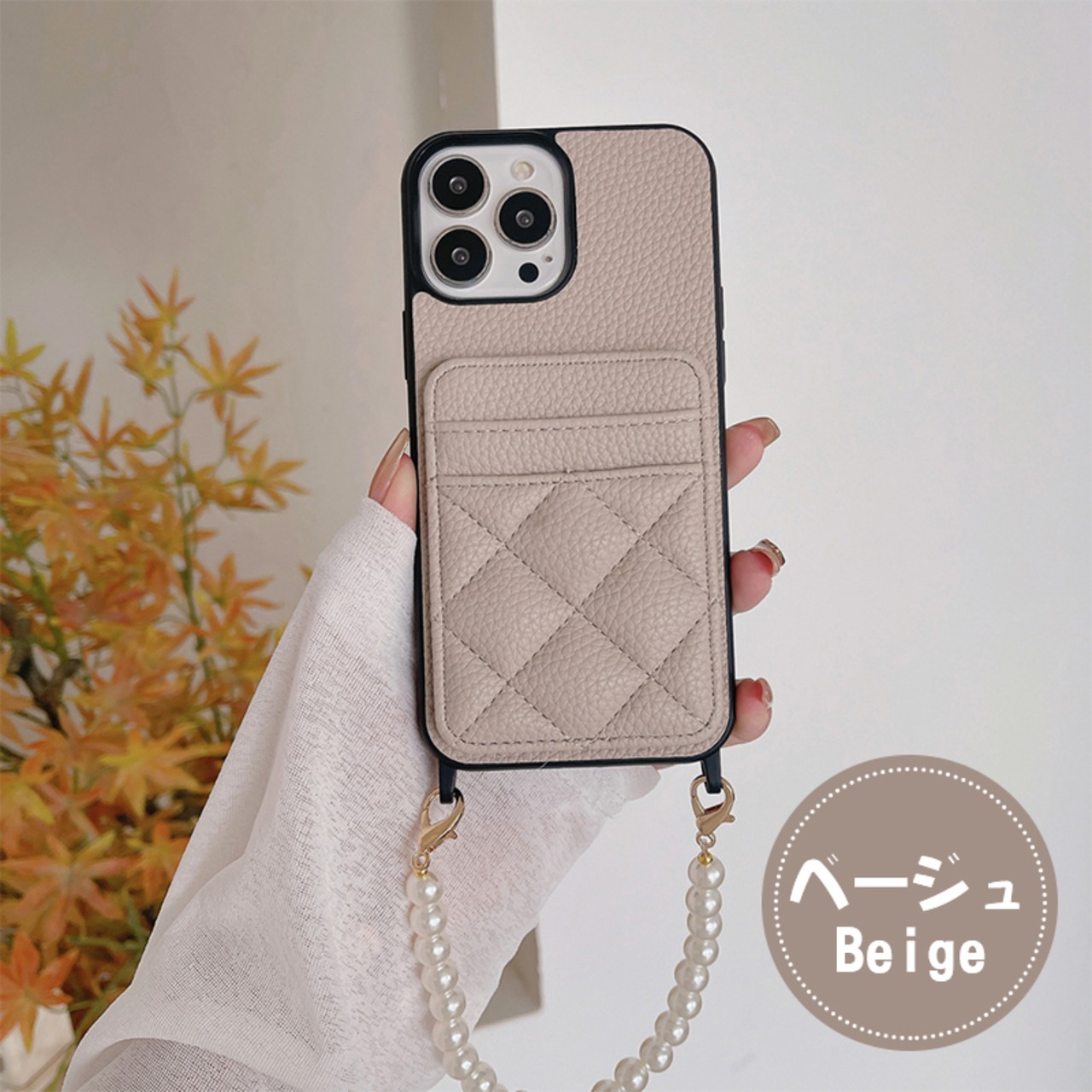 ショルダー 背面 カード収納 iPhone15pro ケース パールのチェーン付き iPhone15ProMax ケース iPhone 14 ProMax ケースiphone13 12 11 ケース