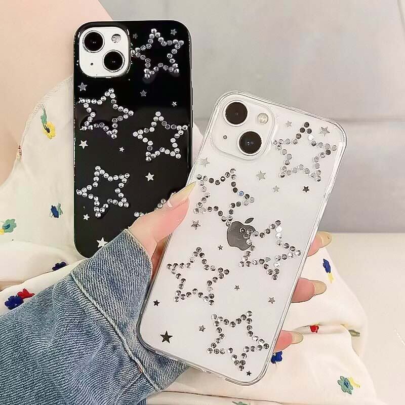 iPhone15 Pro ケースシャイニースター 3D ダイヤモンド グリッター スターケース iPhone14 ケースソフト透明 TPU iPhone13 12 11ケースパーソナライズされたデザイ