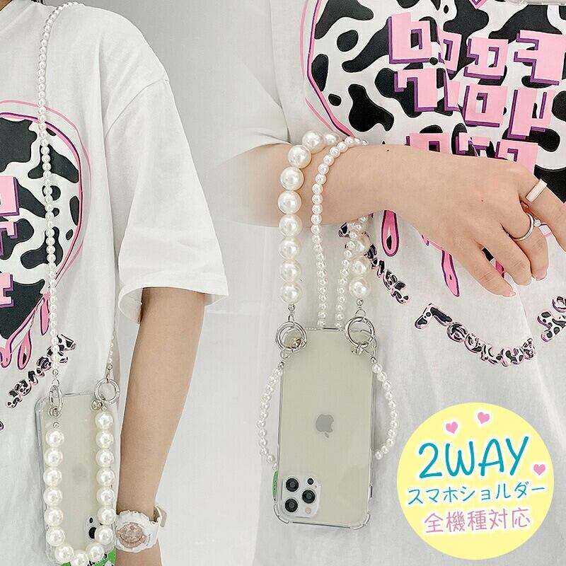 ストラップ パール スマホ 紐 ひも スマホケース スマホカバー iPhoneケース などに 斜めがけ ショルダー 肩 首 ネック 首かけ 落下防止 く透明 大人 高級感 可愛い 韓国 エレガント