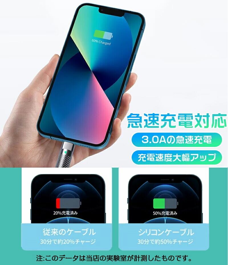 柔軟 頑丈充電 コード スマホケーブル可愛い 女子力男子力UP カラフル 急速充電しながら高速データ転送 ライトニング iPhone USBケーブル