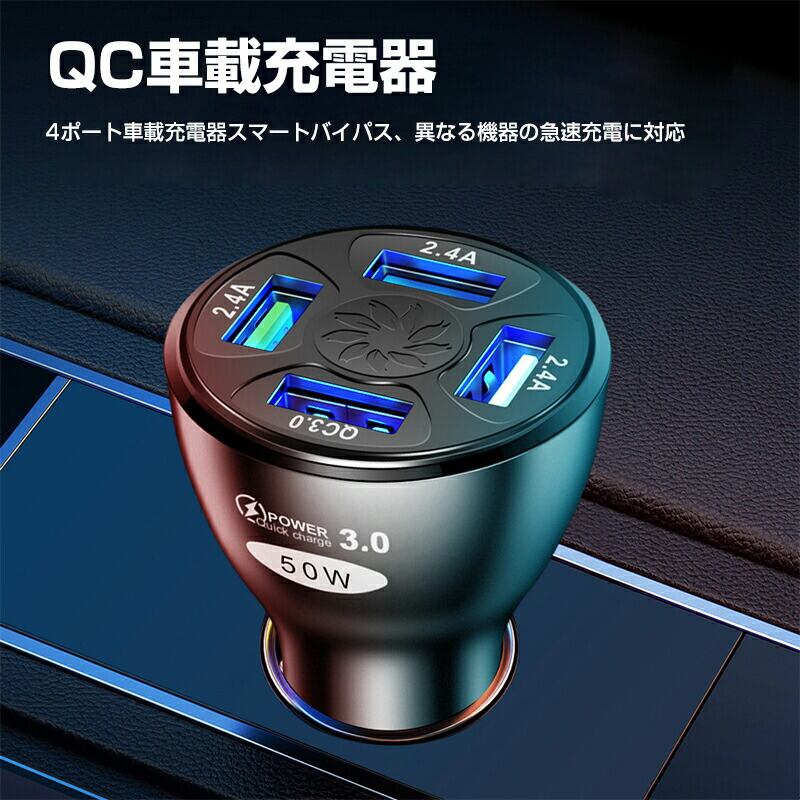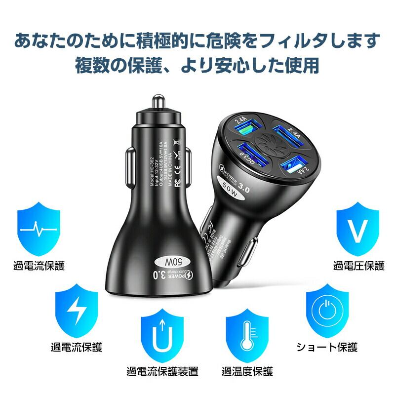 カーチャージャー PD急速充電 QC3.0対応 車載用充電器 iphone充電器 急速充電 4ポート 車載用充電器 スマホiPad 対応 ミニデザイン 軽量 USB 超小型設計