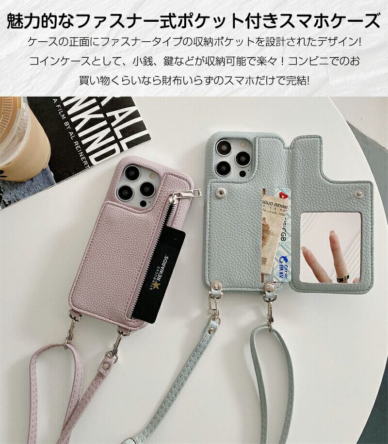 ミラー付き スマホケース ショルダー タイプ iPhone15 ケース かわいい iPhone14 iPhone12pro iPhone11 スマホカバー ショルダー スタンド カードホルダー アイホ