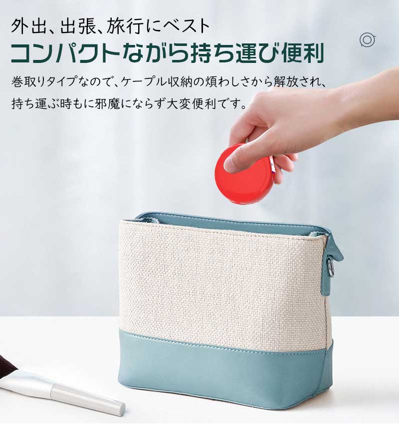 巻き取り式で持ち運びラクラク、配線周りもスッキリします。
