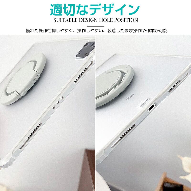 ●ぐるぐる自由自在なリング: 縦置きも横置きもできるスタンドにもなるリング、持ち手部分は360度回転式の円盤型の構造になっています、用途に合わせてお好みの持ち方でiPadをしっかりと持つことができます。