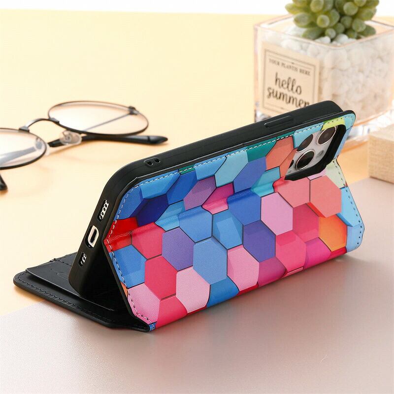 iPhone15 塗装されたカラフルな ケース iPhone14 Pro ケース スタンド機能付き iPhone13 ケース iPhone12 11ケースソフトPUレザー+TPU モバイルシェル フリ