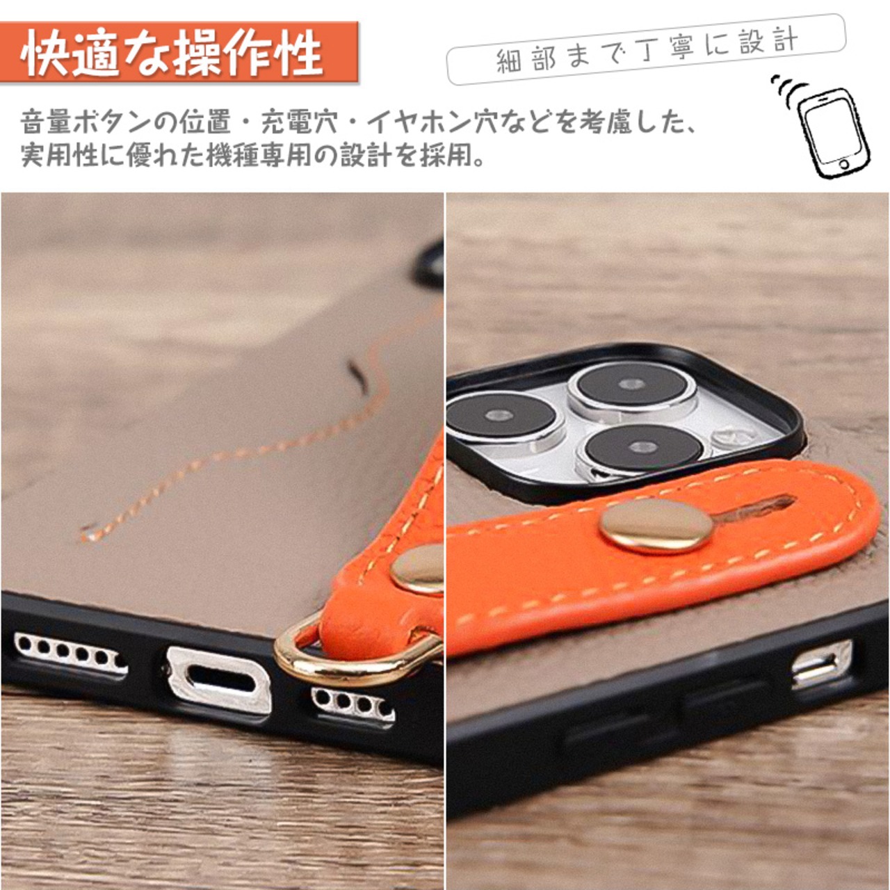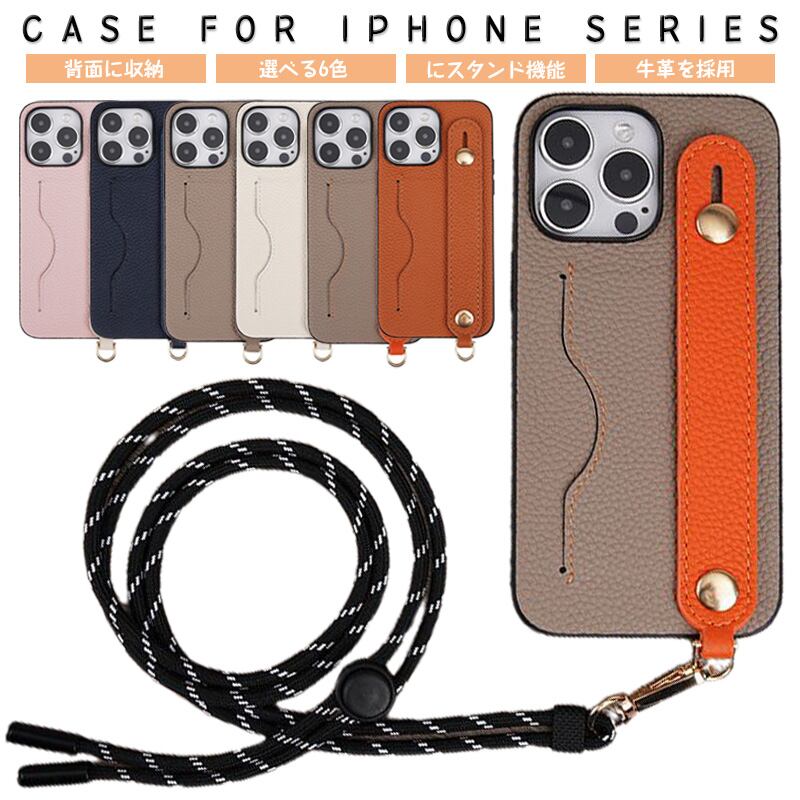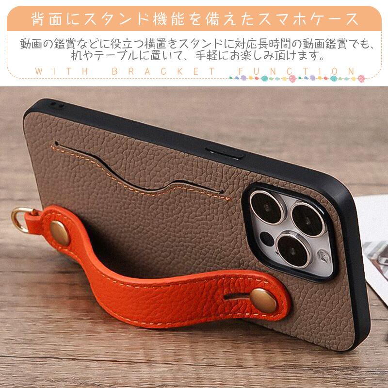 iPhone15 ケースショルダーストラップ付き iPhone14 Pro ケース リストバンドにスタンド機能 iPhone13 ケース背面カード収納 牛革を採用 iPhone12 ケース 高品質 シ