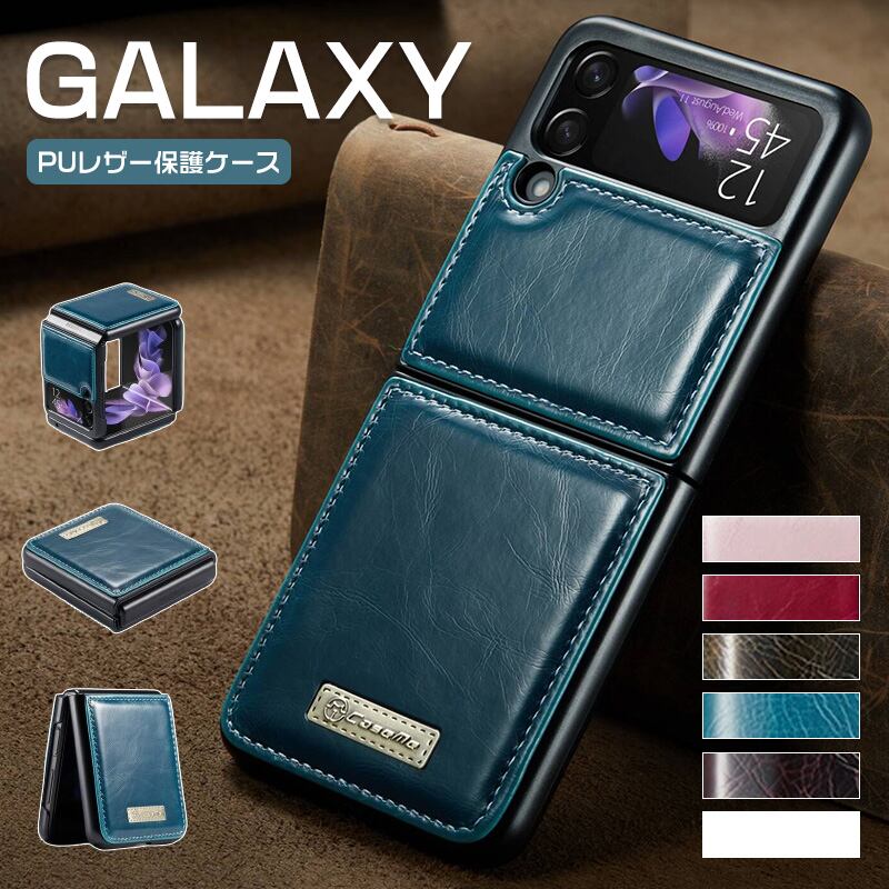 Galaxy Z Filp5ケースヴィンテージレザー カバー 高級 Galaxy Z Filp4 ケース シンプル PUレザーケース耐衝撃 傷がつきにくい設計 Galaxy Z Filp3 ケース レ