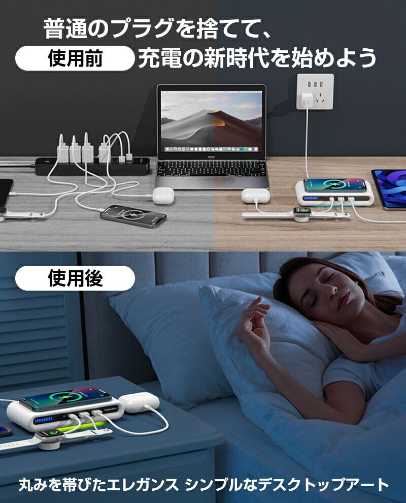 ●マルチデバイス対応:iPhone ,Samsung Galaxy およびその他の Qi 対応デバイスと互換性があります。 Apple Watch シリーズ se/6/5/4/3/2 (充電ケーブルは付属しません。)、AirPods 1/2/ AirPods /AirPods Pro、iPad、Android 携帯電話用の USB 充電ポート