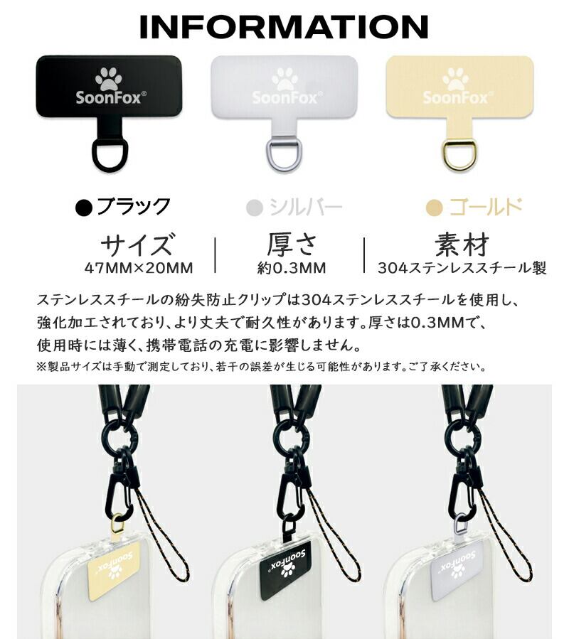 ステンレススチールの紛失防止クリップは304ステンレススチールを使用し、強化加工されており、より丈夫で耐久性があります。厚さは0.3MMで、使用時には薄く、携帯電話の充電に影響しません。