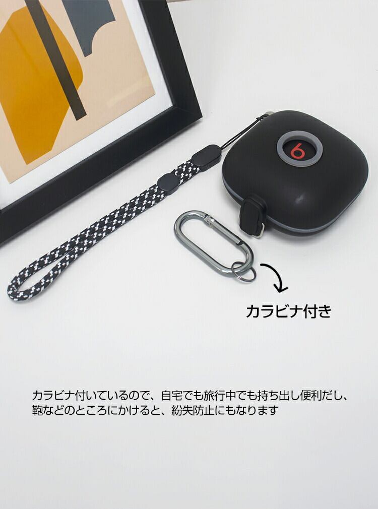 ビーツ フィット プロ 用のタフで頑丈 2重構造 TPU+PC ケース Beats Fit Pro CASE がおしゃれな カバーを装着したまま、充電タイプ可能です ストラップ付き カバー カラビナ付