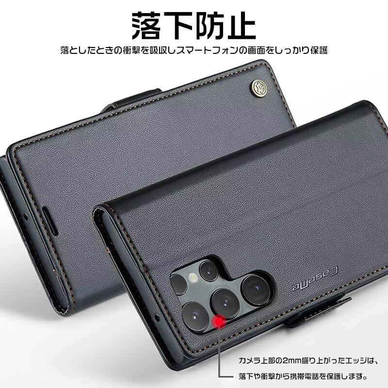 【多機能】23ultraにケースを付けたままワイヤレス充電、ボタン操作、接続、通話可能、ケースを外す必要なし、カードの落下を防ぐポケットも付いています、ポケットはカードの厚みに合わせて設計されております。 ICカードや各種ポイントカード、名刺なども収納できるディンプル加工を施したポケットです(※注:交通系カードやキャッシュカードをご使用の際はカードポケットから取り出してご使用ください。)横置きにできるスタンド機能も付いて、動画視聴や読書なども楽々楽しめます