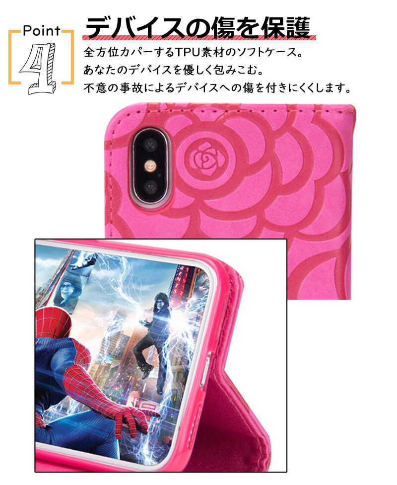 ◎大切なスマホを360度全面保護できる手帳型保護カバーです!カラーバリエーション豊富!PUレザーに椿の型押しでとても上品で女子力UP!