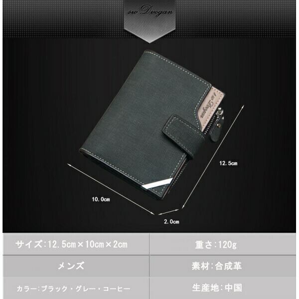 メンズ二つ折り財布 財布 多機能短財布バッグ 小物 ブランド雑貨 続々入荷中カラー: ブラック グレー コーヒー