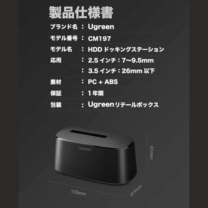 メーカー Ugreen型番 USB 3.0ハードディスクドッキングステーション CM197 50740商品説明