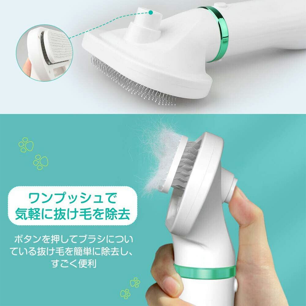 ブラシとドライヤー2in1の設計で、操作簡単便利:ペットちゃんは抜け毛取りの他、マッサージ、毛の仕上がりも一緒にできます。特に、皮膚病があるペットちゃんにとってすごくオススメです。 商品仕様と品質保証:ヘッドブラシのサイズ:約12*7CM ハンドサイズ:約20CM 電源コードの長さ:約2M ブラシ口部分の風スピード:4.8m/s 適用対象:犬猫全種類、うさぎ、ネズミなどのような小動物 本商品は冷風モード、中風モード、熱風モードがあります。ペットちゃんの個体によりご自由に使います。