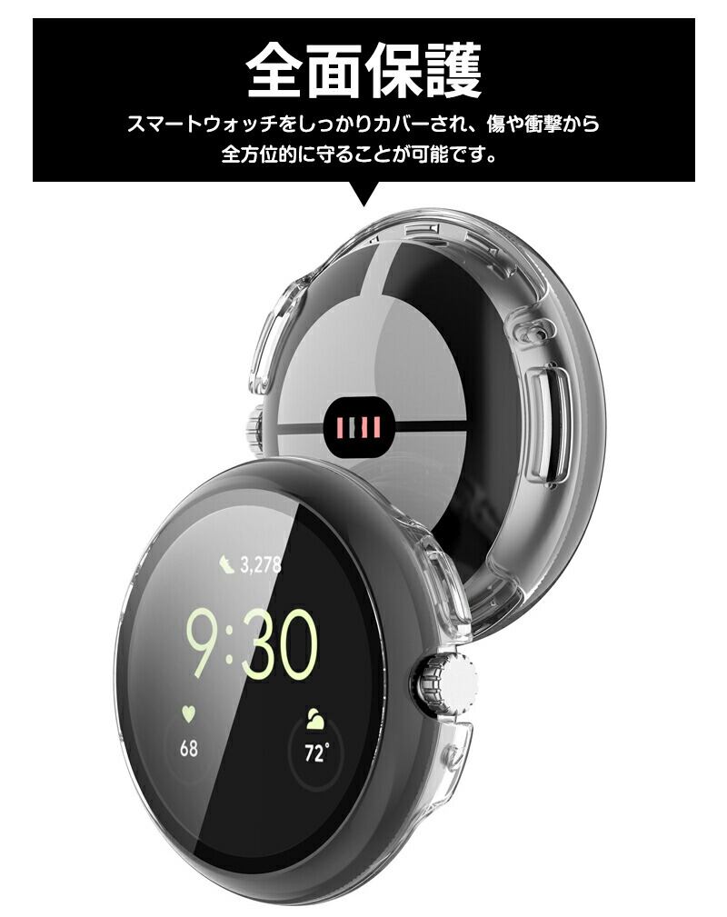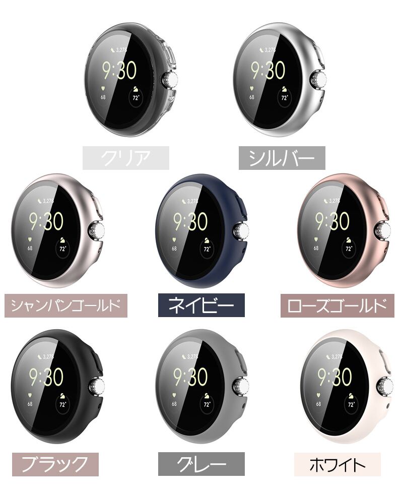 グーグル ピクセル ウォッチ 2用のケカラー: クリア シルバー ネイビー ローズゴールド ブラック グレー ホワイト シャンパンゴールド